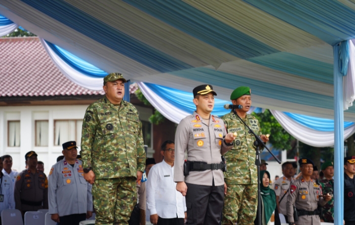 Apel kesiapan dilaksanakan di Lapangan Tegar Beriman, Cibinong, Rabu (5/11). Bupati Bogor, Rudy Susmanto bersama Forkopimda memastikan secara langsung kesiapan personel. Personel gabungan, terdiri dari Pemerintah Kabupaten (Pemkab) Bogor, TNI, Polri, dan relawan masyarakat.
