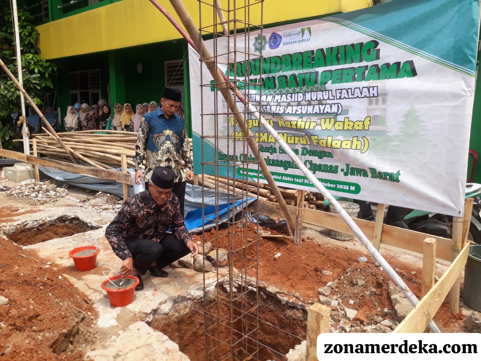 Masih di hari yang sama, Yayasan Kiblat Sukanagalih Cipanas, Cianjur, bekerja sama dengan Nazhir Wakaf MTs dan SMA Nurul Falah, mengadakan acara peletakan batu pertama (ground breaking) pembangunan Masjid Nurul Falah.